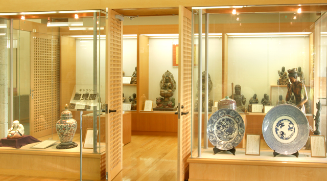 館内にある屏風絵や陶磁器など、不二やホテル所蔵の美術品が並ぶギャラリールーム「夢見館」。どうぞごゆっくりご鑑賞ください。