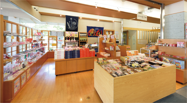 おみやげ処「包みの和」は、青森の定番お土産から地酒や津軽金山焼などバラエティに富んだ品揃えで、旅の思い出を彩ります。