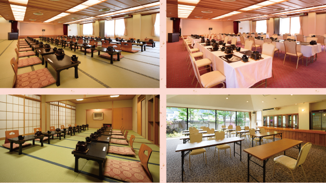 不二やホテルでは様々な規模の会場がございます。ご宴会・祝賀会などの大規模な大会から、少人数の会議やセミナー・研修まで目的によりスタイルに合わせてご利用いただけます。是非ご利用くださいませ。
